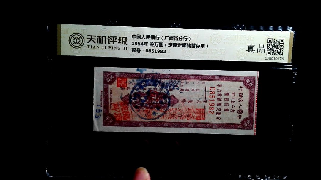 1954年 叁万圆(定期定额储蓄存单)